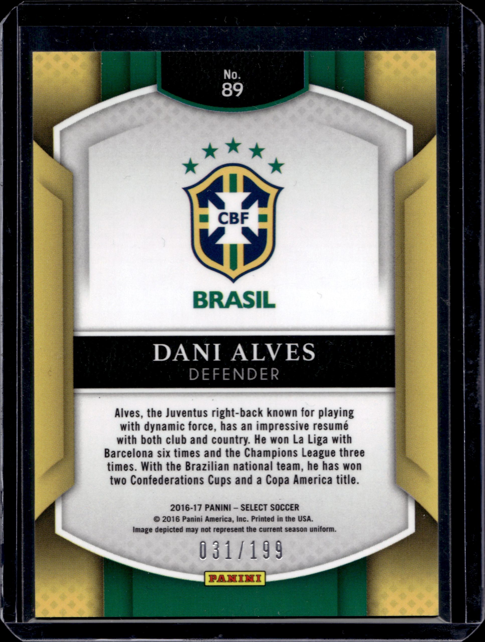 2016 PANINI SELECT DANI ALVES 031/199 RED #89