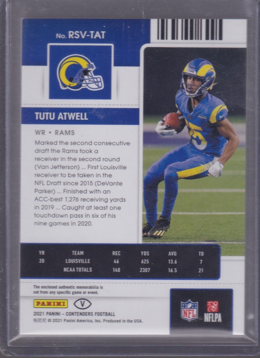 2021 PANINI CONTENDERS TUTU ATWELL GREEN ROOKIE TICKET PATCH #RSV-TAT