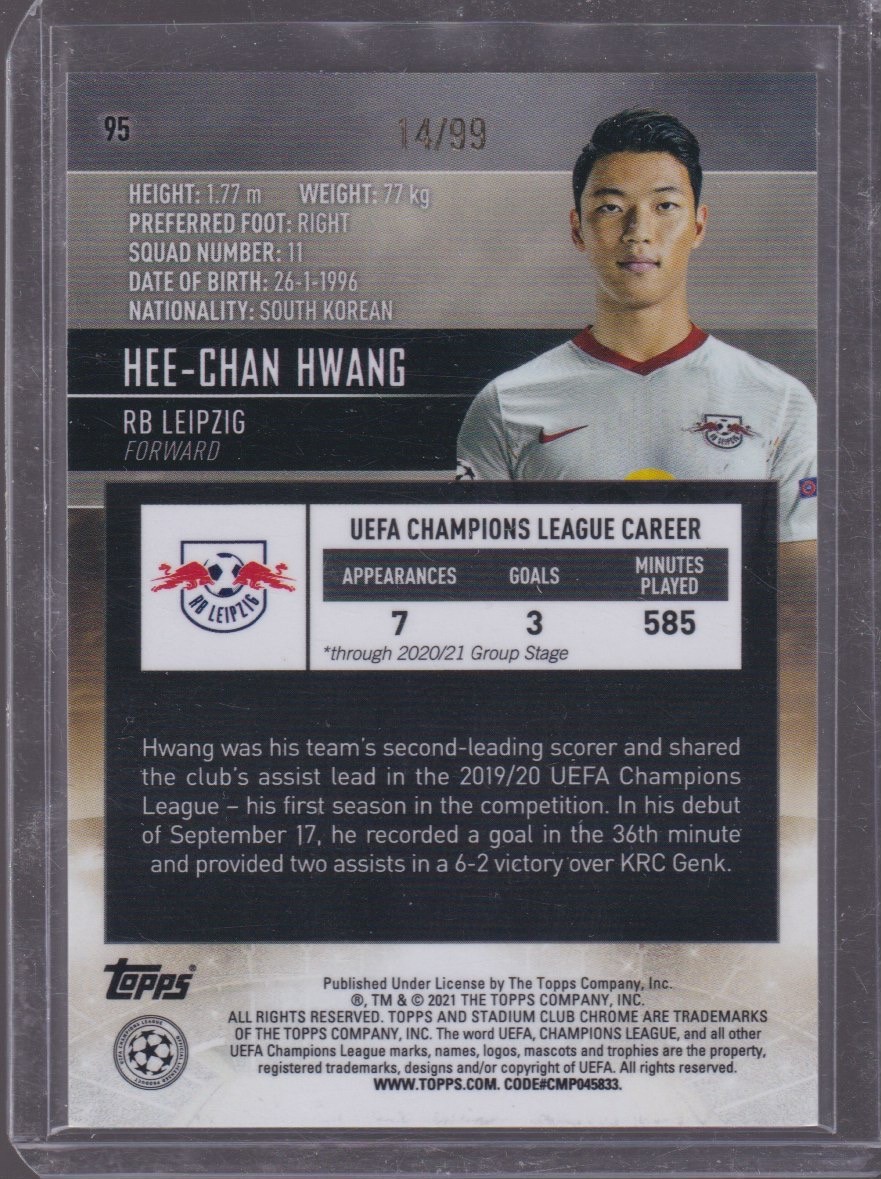 2021 TOPPS STADIUM CLUB CHROME HEE-CHAN HWANG 14/99 GREEN #95
