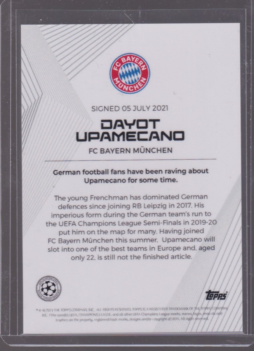 2021 TOPPS SUMMER SIGNINGS DAYOT UPAMECANO 21/25 PURPLE