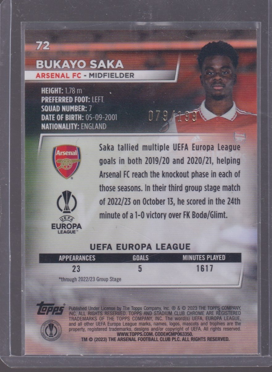 2023 TOPPS STADIUM CLUB CHROME BUKAYO SAKA 079/199 NIGHT VISION #72
